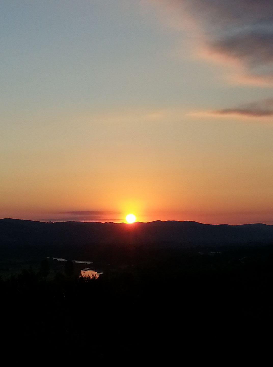 Rasaritul era la fel de fabulos. Deasupra padurii care ne desfata privirea in fiecare zi, cu o multitudine de  nuante de verde, se ivea Soarele…usor, putin cate putin, schimband de la o secunda la alta, culorile cerului.