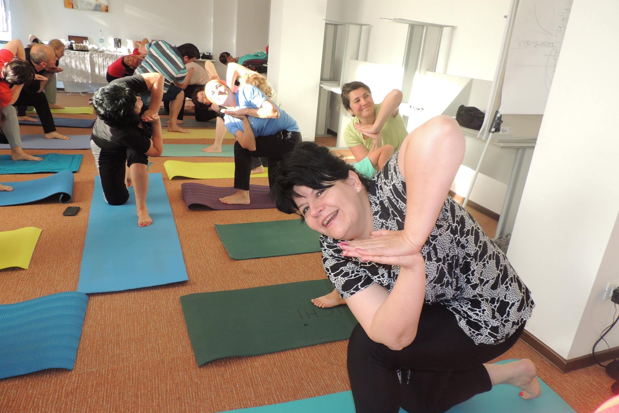 30 de minute de yoga la prima ora a diminetii, ne-au adus aminte cate grupe de muschi nu folosim zilnic. Si ce intepenite sunt articulatiile noastre! Ha-ha! Serios! Era de-a dreptul stanjenitor sa-ti dai seama ca nu poti indoi anumite parti ale corpului. Felicitari dnei dr Galiceanu ce ne-a fost instructor si pe care am admirat-o sincer pentru mobilitatea, perseverenta si rabdarea de care a dat dovada.