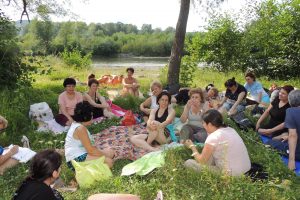 Cuvintele zburau ca fluturii, ideile se imprastiau odata cu miresmele, contactul cu iarba moale si susurul apei au creat un cadru de curs nemaiintalnit.